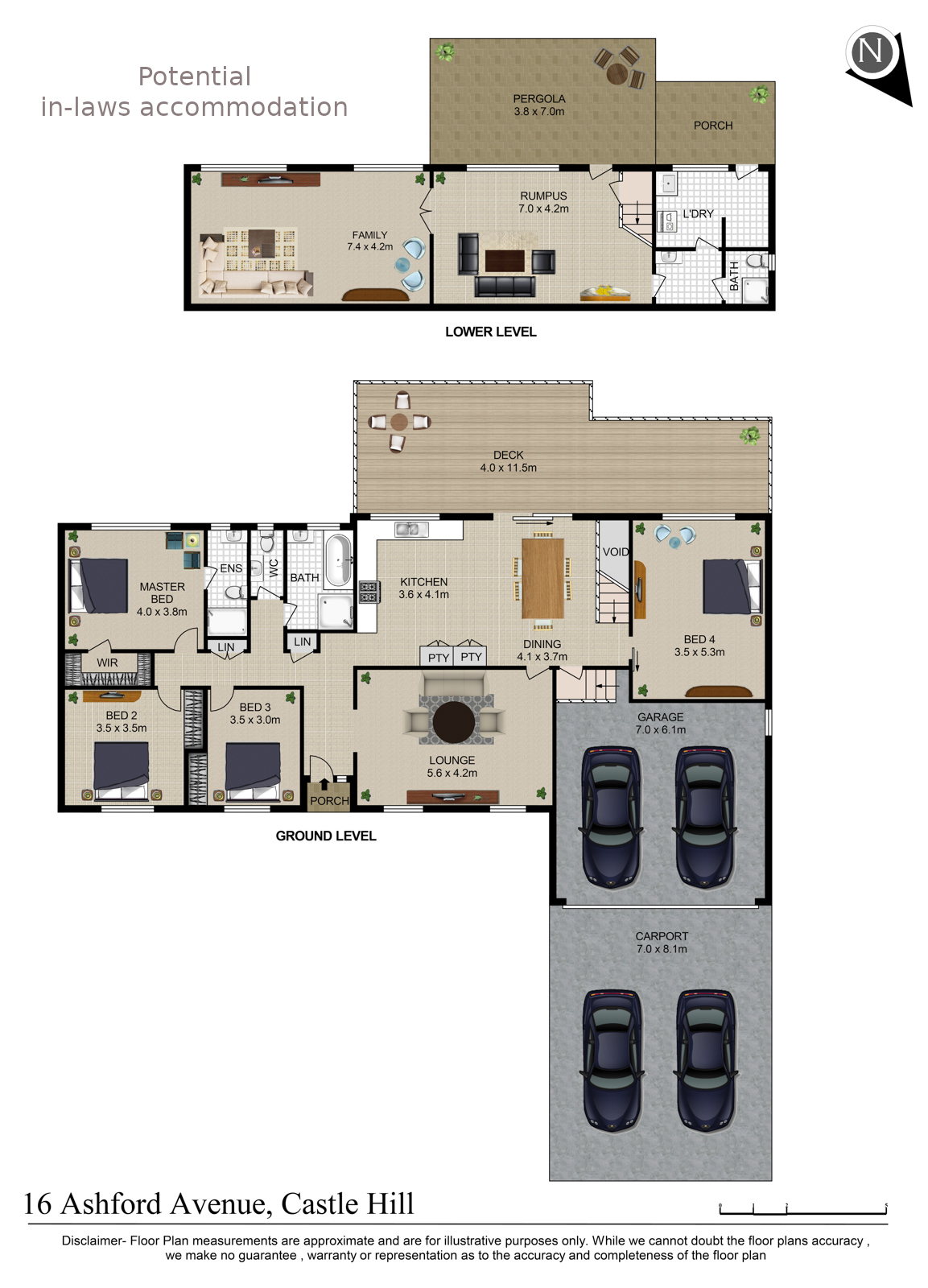 - double lock up garage with additional covered double car port