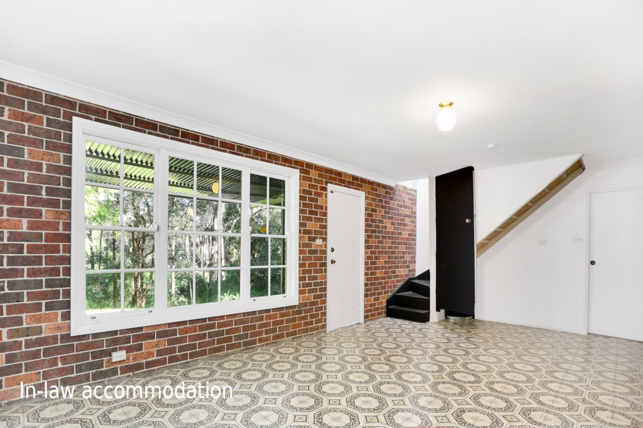 The double lock-up garage with extra mezzanine storage space, while downstairs, a rumpus room offers additional living space for entertainment or relaxation, and stepping outside onto the expansive entertaining deck with a glass balustrade provides stunning views of the serene bush outlook.