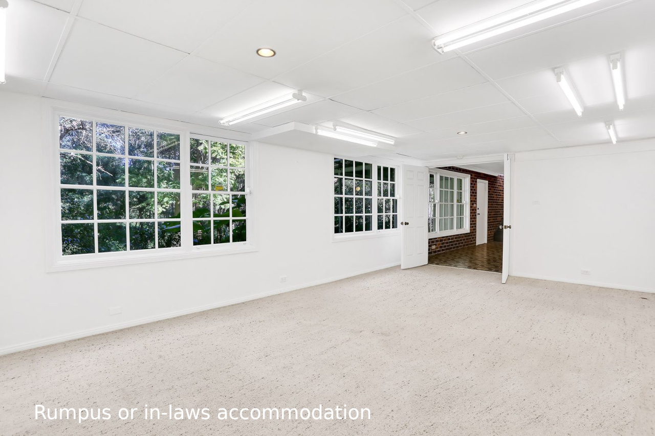 The double lock-up garage with extra mezzanine storage space, while downstairs, a rumpus room offers additional living space for entertainment or relaxation, and stepping outside onto the expansive entertaining deck with a glass balustrade provides stunning views of the serene bush outlook.