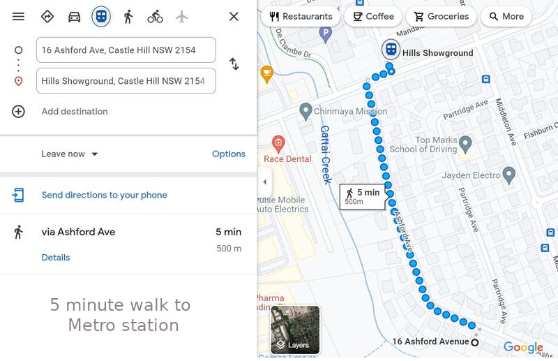 - walk to Showground Metro Station